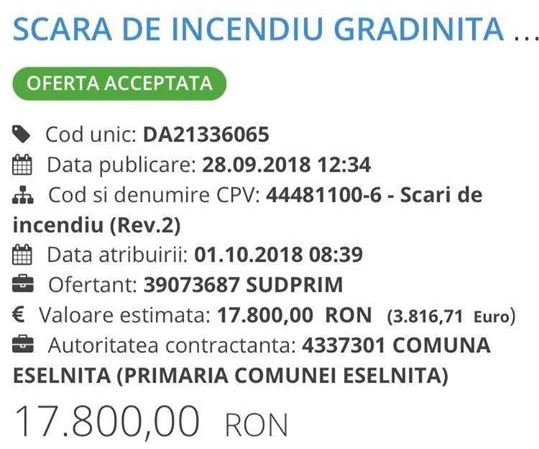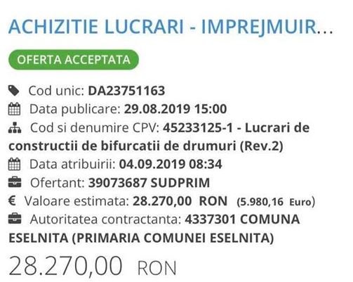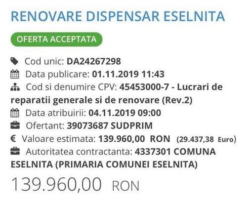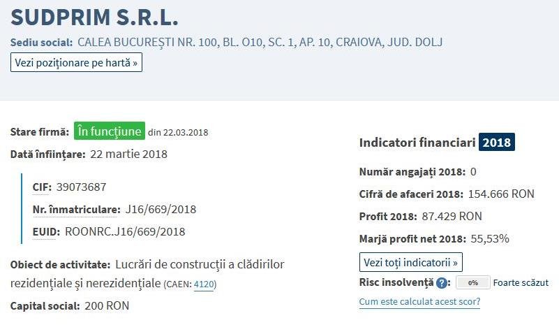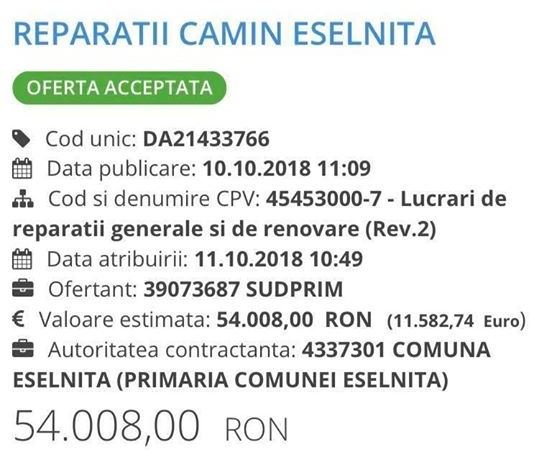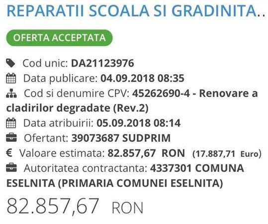 Cum explici alegatorilor faptul ca o firma de apartament cu ZERO  angajati SUDPRIM SRL, infiintata in martie 2018, la doar cateva luni de la infiintare incepe sa castiga pe banda rulanta contracte de asa zise licitatii de achizitii publice pentru diverse lucrari in Eselnita, contra unor sume de zeci de mii de EURO ?