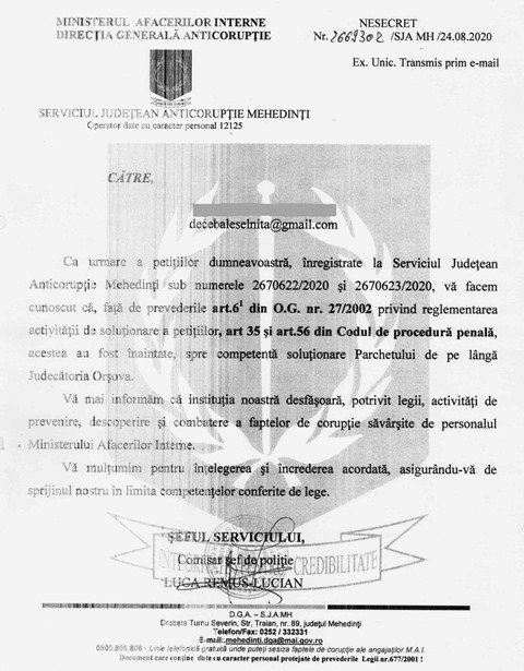 Fiindca zarurile din prima mana se joaca la nivel local, ca sa ne asiguram ca nu va mai putea interveni vreo mana a talharilor lui Aladin care sa incerce sa aranjeze prin intermediul unor anchetatori corupti aruncarea batistei pe tambal, Agentia Cazanelor Dunarii DECEBAL ESELNITA a avertizat sa fie ochi si urechi pe cazul asta si Directia Generala Anticoruptie a Serviciului Judetean Anticoruptie Mehedinti al MAI.